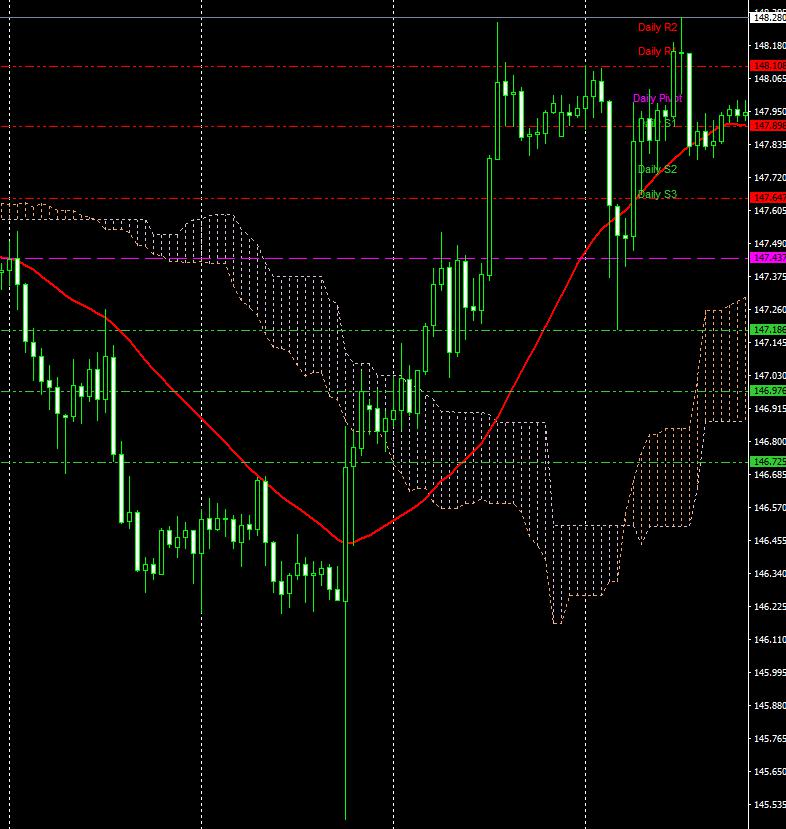 先週の最安値を切り取ったレンジ幅、146.20~148.70ぐらいを見ていきます。
