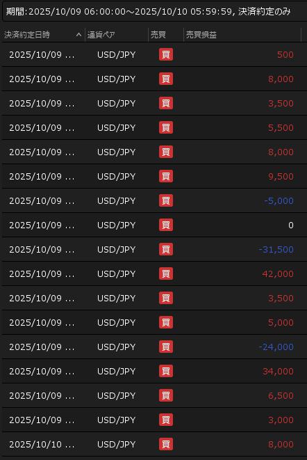 10月9日の利益 +76,500円