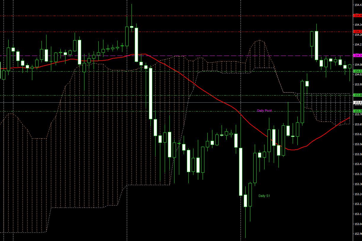 サポートラインは引き続き、153円ちょうど、レジスタンスラインは154.30円辺りで見ていきます。