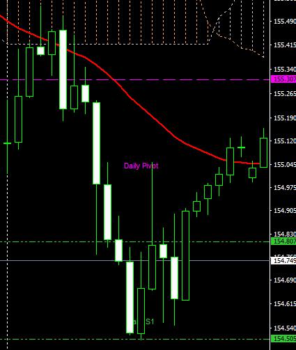 上昇ならば155円ちょうど辺りまで、下落ならば154円ちょうど辺りまで狙っていきます。