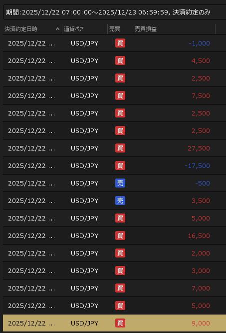 2025年12月22日の相場の動き