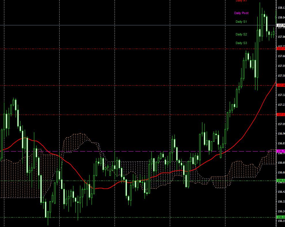 高値更新ならば159円近くまで上昇する可能性はありますが、高値感が出ている今は、ちょっとキツイでしょう。