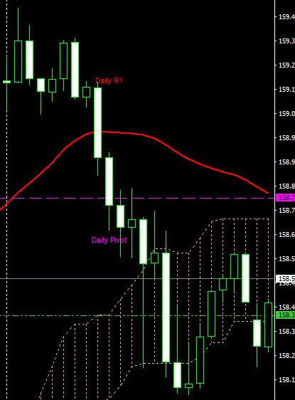 注目ラインは158.65円付近でここを上抜けしてくるかレジスタンスラインとして機能するかどうかに注目です。