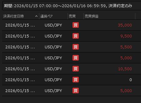 1月15日の利益 +70,500円