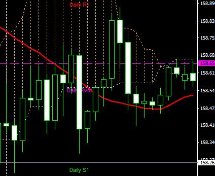 レジスタンスラインは159円ちょうど付近、サポートラインは157.60円辺りを見ていきます。