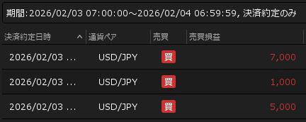2月3日の利益 +13,000円