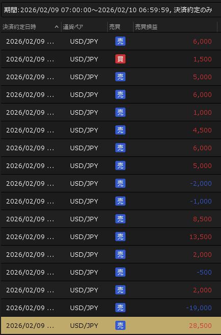 2月9日の利益 +70,500円