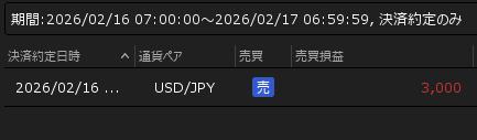 2月16日の利益 +3,000円