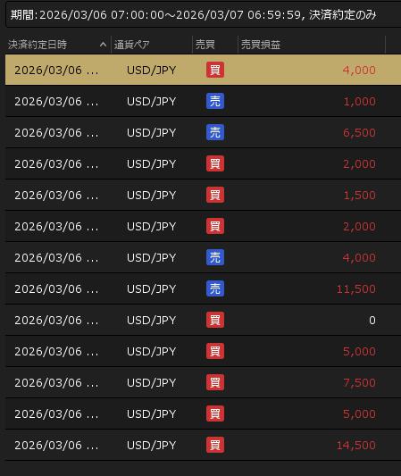 3月6日の利益 +64,500円
