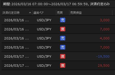 3月16日の利益 +31,000円