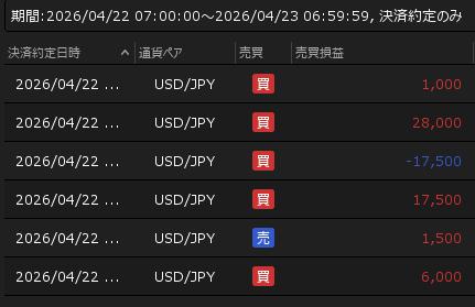 4月22日の利益 +36,500円