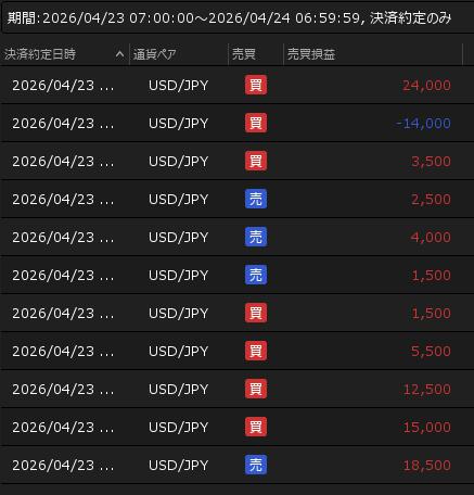 4月23日の利益 +74,500円